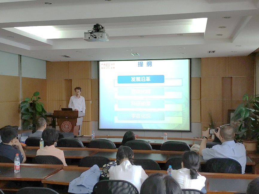 5月19日下午1点,社团学姐漫画 2018年本科招生宣讲会在化学楼A526演讲厅举行。社团学姐漫画 副院长钱雪峰,党委副书记郑浩出席本次宣讲会,并分别对社团学姐漫画 、致远荣誉计划(化学方向)和自然科学试验班的招生工作与招生计划进行了宣讲介绍。