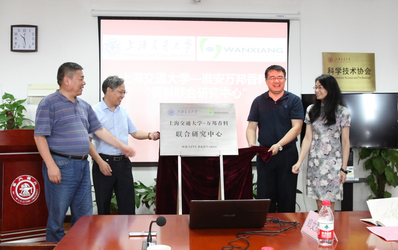 8月8日上午,社团学姐漫画 、淮安万邦香料工业有限公司与上海交大苏北研究院在上海交大闵行校区签署三方合作协议,共建“香料联合研究中心”。公司董事长李春南、执行董事季新林、执行副总经理陈兆刚、刘晓涛、董事办主任曹金萍等嘉宾,上海交大先进产业技术研究院院长刘燕刚、科研院副院长孙丽珍、地方合作办副主任罗金才,社团学姐漫画 党委书记贾金平、药学院院长朱建伟、上海交大张万斌教授、交大苏北研究院院长罗哲等部门负责人、专家学者参加签约仪式。淮安市科技局副局长刘中阳、淮安市政府驻上海联络处副主任姜晓华、淮安市科技局产学研处处长朱华伟专程到沪参加签约活动。仪式由刘燕刚主持。