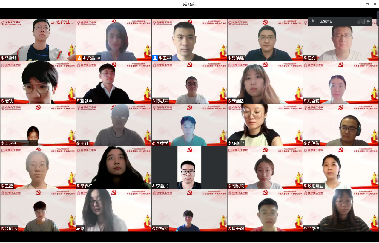 最后,吴映强为毕业生党员开展“不负青春韶华,不负时代责任”远航教育主题党课。他结合习近平总书记在庆祝中国共青团成立100周年大会上的重要讲话,号召毕业生党员以国家、时代责任为己任,将自己的命运与时代命运相连,在推动国家发展的过程中实现个人价值。同时向同学们分享了四位化院优秀校友徐光宪、高小霞、徐名材、蔡力宏等为祖国建设而不断努力奋进的故事,勉励大家传承和发扬“霞光精神”,怀揣远大理想,发挥专业优势,贡献应有的力量。此外,吴老师也结合疫情号召各位党员同志用实际行动充分展现抗疫担当,要坚定理想信念,提高政治站位,在大上海保卫战中冲锋在前,有所作为。最后,吴老师向全体毕业生党员提出要求和期望,希望大家在今后能够志存高远、锐意进取、达观向上,传承和发扬好“霞光精神”,把个人命运与国家命运和民族前途紧密联系在一起,为祖国和社会的发展贡献自己的力量。