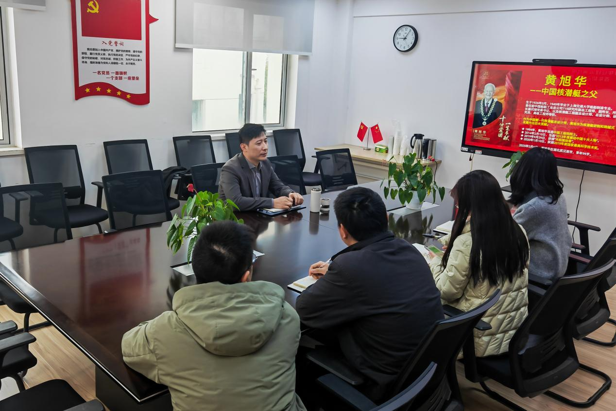 会前,党小组专题学习了“黄旭华先进事迹”,并在文博楼参观了黄旭华校友纪念展。展览以丰富的图文资料和实物展示,生动再现了黄旭华先生从青年求学、投身科研到成为“中国核潜艇之父”的传奇一生。激励全体党员以黄旭华院士为楷模,坚定理想信念,勇于担当作为。