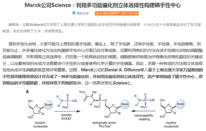 4月28日,美国Merck公司的Daniel A. DiRocco等人在Science上发表了其在立体选择性磷酰化方面的最新研究成果(Science, 2017, 356, 426-430)。他们基于社团学姐漫画