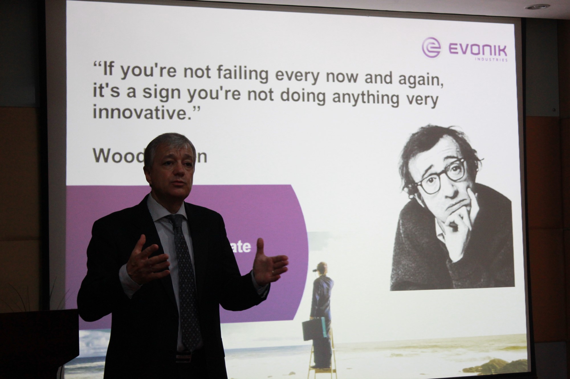 师生做了题为“引领创新——以人为本”的讲座,介绍了赢创工业集团的发展历程,除与学院老师和同学们探讨赢创的产品应用和创新改革外,Nagler博士还分享了他在化工界28年的工作经历和职场经验。现场互动中,大家就赢创工业集团创新问题、Nagler博士个人的职业生涯等问题进行了交流。