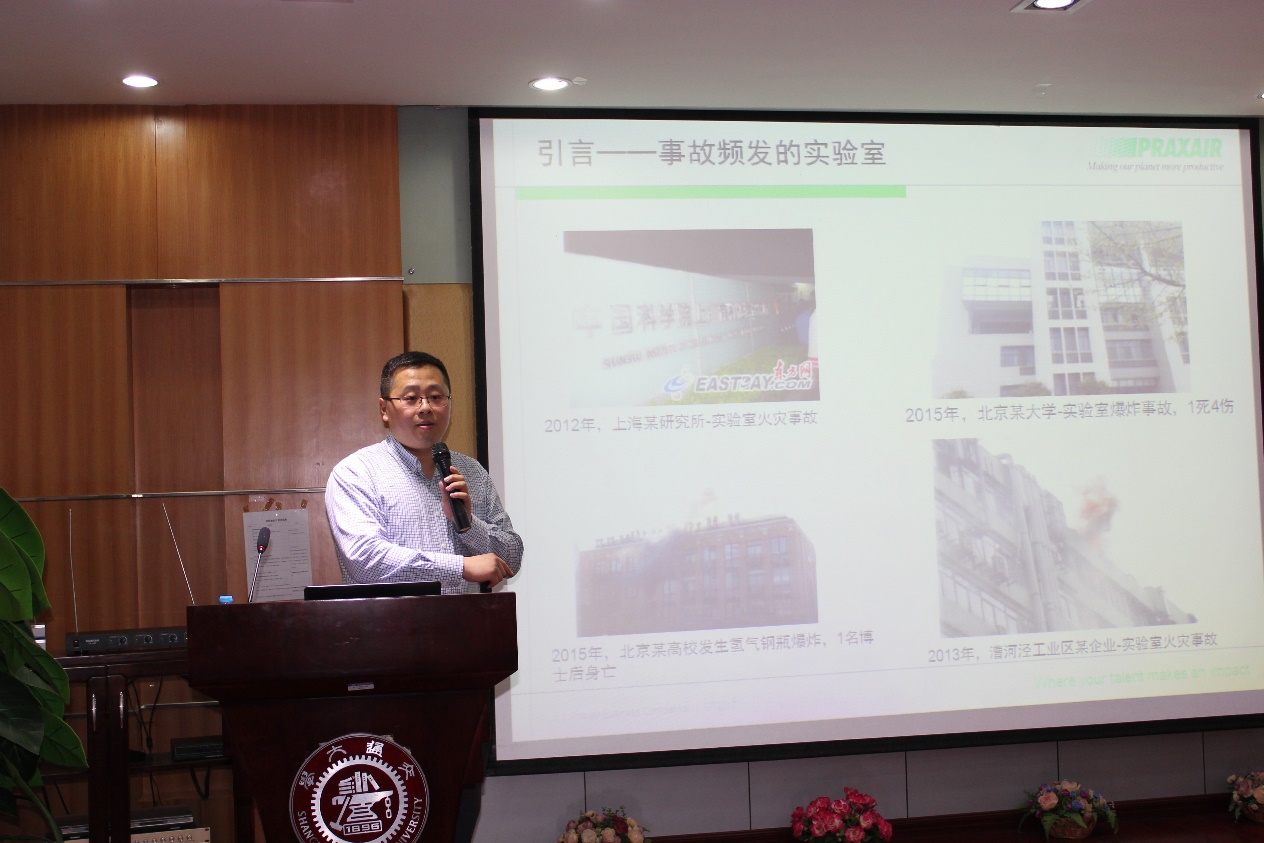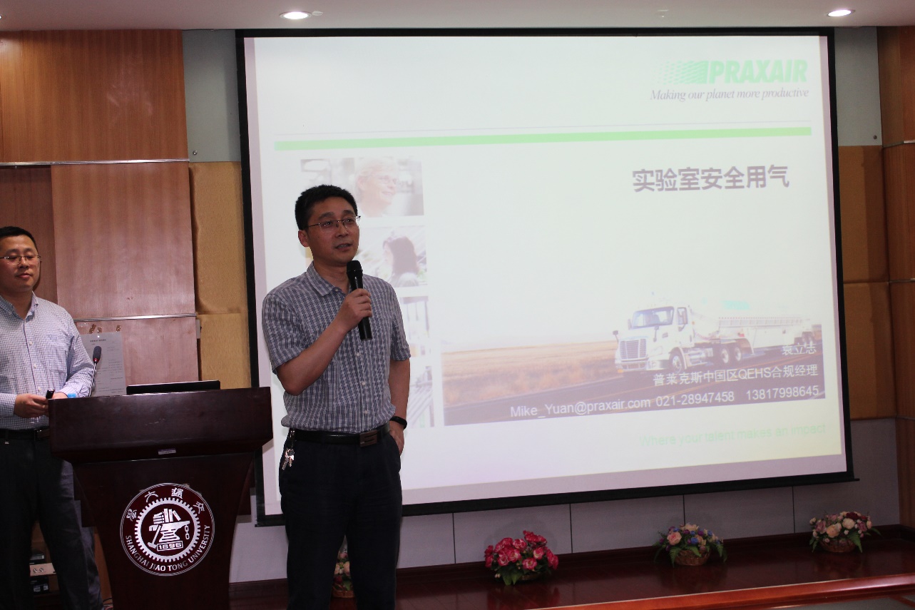 5楼演讲厅举行了关于实验室用气安全讲座。本次讲座普莱克斯资深安全管理专家袁立志主讲。副院长彭宗林,学校各院系安全员,研究生等40余人参加讲座。讲座由彭宗林主持。