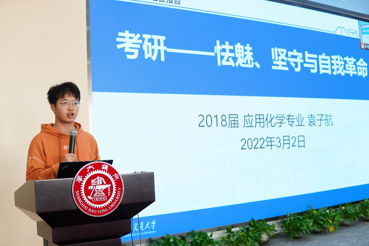 接下来,李婧涵、张任翔、袁子航、周鹏、张雨萌五位学长学姐以亲身经历为大家分享了包括夏令营、考研和出国深造的诸多注意事项。李婧涵和张任翔分别从夏令营前的准备、面试注意事项和重要日程安排向同学们全面地介绍了夏令营的具体流程;袁子航和周鹏则以自己刚刚过去的2022年考研经历给同学们传授考研安排、复习指南、心态调整等方面的经验;张雨萌就本科生申请国外院校的流程和注意事项展开了全面详细的介绍,并分享了简历、个人陈述等文书的撰写经验。