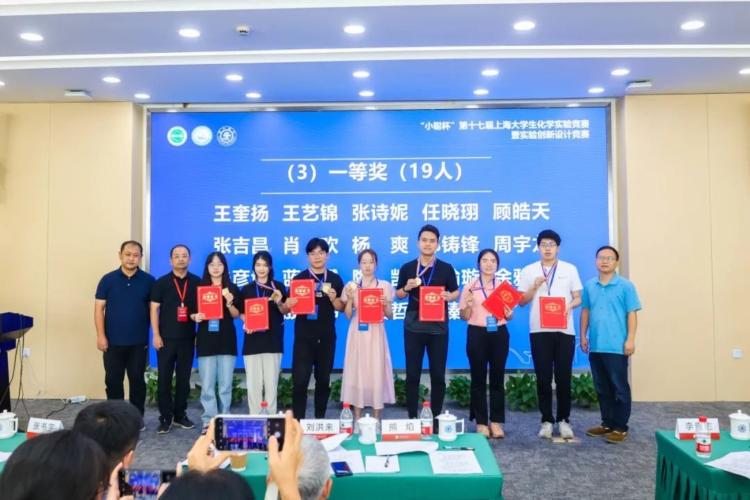 经过两天激烈比拼,化学实验竞赛共评出特等奖10人、一等奖19人、二等奖19人、优秀奖9人;化学实验创新设计竞赛评出特等奖4组、一等奖8组、二等奖9组;6人获“优秀指导老师”称号,1人获“特别贡献奖”。