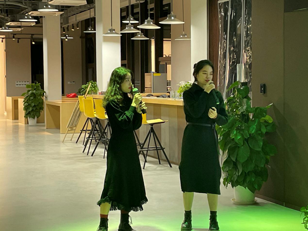 随后,主持人李翔和张配荧同学带领在场成员进行了暖场游戏——“拍八令”游戏。在场的同学轮流报数,凡是遇到含8或者为8的倍数的数字,则需要拍掌通过,失误的同学需要上台表演一个节目。趣味又刺激的游戏立刻活跃了全场气氛,名材班王一名、张婧雯、赵芹、刘汝欣等同学以及班主任梁晶老师纷纷上台表演,欢笑驱逐了冬夜里的寒冷。