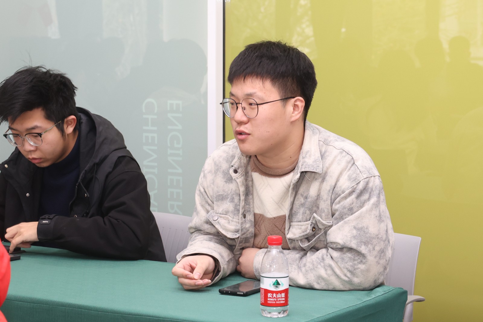 会上,学生代表们围绕时事热点、个人成长、学业发展、校园生活、生涯规划及意见建议等多个方面畅所欲言,包括如何将人工智能与化学学科研究相结合、跨学科交叉研究的前景与发展、针对低年级本科生专业认同的提升方法等。同时也就科研能力提升、心理辅导与职业规划、基础设施改善等方面提出了建议。硕士生陈睿镓建议开设人工智能辅助化学研究的讲座;硕士生陈欣宇表达了目前就业压力大的现状,希望能选修与所学专业相匹配的英语课程,提高英文面试能力;本科生高凌瀚、赵吉祥等同学则对课程设置和教材改革提出了见解,如更新化工原理教材、增加去企业参观走访的实践类课程、优化课程排课时间等。