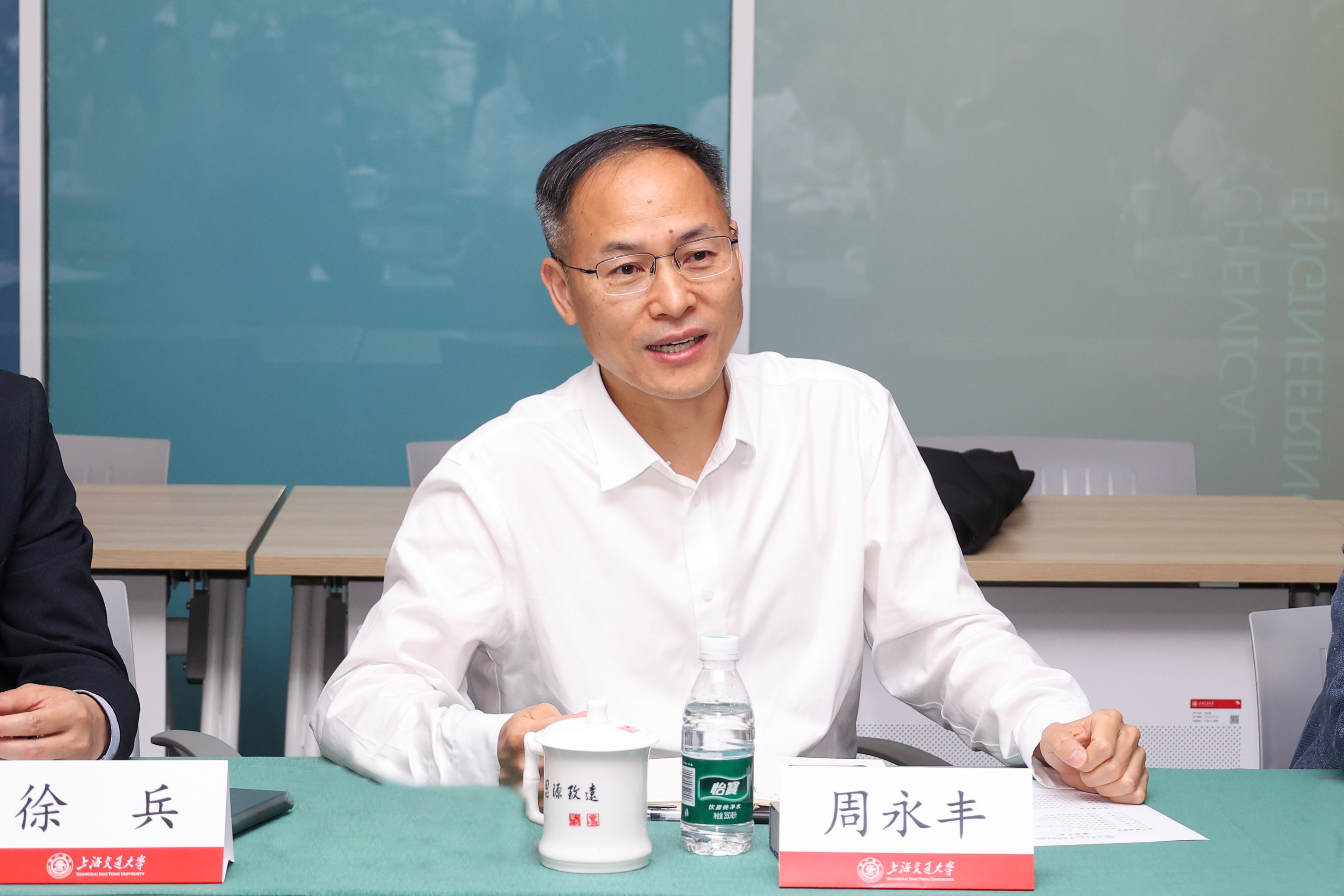 在交流环节,双方围绕合作模式、科技成果转化等议题展开热烈讨论。周永丰表示,学校将充分发挥科技创新策源地作用,积极对接诸暨产业发展需求,构建长效合作机制。徐兵建议借鉴学校成熟的校地合作模式,通过设立技术转移分中心、组织企业“揭榜挂帅”等方式实现需求精准对接。吴映强指出,学院将立足学科特色,在技术攻关、人才培养等方面提供支持。