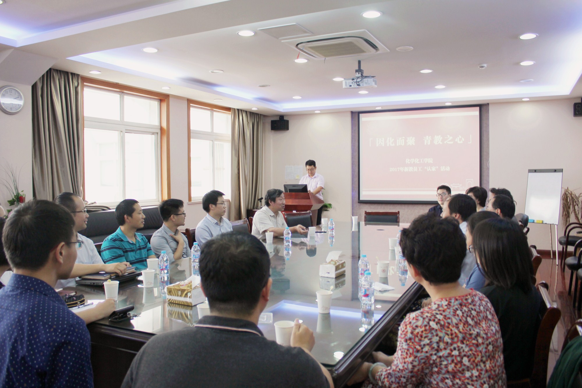 贾金平书记先代表学院向全体新进教职工致欢迎词,欢迎在座各位加入化院的大家庭。朱新远院长随后为大家详细介绍了化院的昨天与今天,期待与大家共同谱写明天。王新灵主席对学校和学院工会以及部分福利进行了介绍,蔺丽老师与王永红老师做了相关补充。