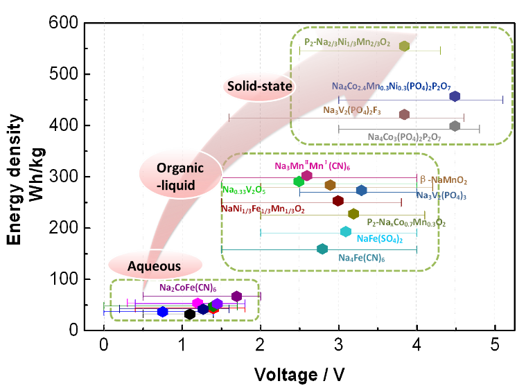 马紫峰教授与其博士生车海英、陈苏莉、颉莹莹等在Energy & Environmental Science(影响因子:25.427)发表了题为“Electrolyte design strategies and research progress for room-temperature sodium-ion batteries”的综述文章。本文针对钠离子电池产业化过程遇到的电解质技术瓶颈问题,深入分析了国内外钠离子电池电解质研发现状,全面回顾了钠离子电池的液体、固体或凝胶型等三类电解质研究最新进展,探讨了满足各种电极材料体系及安全性和长循环寿命等功能需求的电解质设计策略,并基于不同电解质组成和形态,在国际上首次勾画出钠离子电池技术路线图,阐述了不同电解质类型及其电化学窗口和能量密度 的变化规律,为钠离子电池研究提供一条清晰的发展思路。