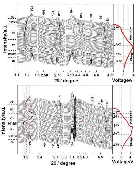 钠离子电池与锂离子电池有类似的工作机理,都是通过钠或者锂离子的脱嵌机制实现其充放电过程。由于地球上钠资源丰富,可通过海水结晶获得廉价的钠盐,钠离子电池有望成为未来大规模储能应用的电化学储能器件,成为电化学能源工程研究的热点。马紫峰小组研究是国际上钠离子电池工程化研发的领军团队,在开展普鲁士蓝类,层状结构过渡金属氧化物两类正极材料研究基础上,依托上海电化学能源器件工程技术研究中心,与中聚电池研究院合作,率先完成了NaNi1/3Fe1/3Mn1/3O2 三元正极材料规模化合成放大试验,并批量制作了软包型钠离子电池,完成了千瓦级钠离子电池储能系统样机(Journal of The Electrochemical Society, 2016,163 (3) A565-A570)。与美国能源部阿贡国家实验室合作,利用先进光源(APS)的原位XRD及TXM等手段,系统揭示了NaNi1/3Fe1/3Mn1/3O2 三元正极材料的嵌脱钠过程的结构相变规律(Advanced Energy Materials, 2016,6(4):1601306),为钠离子电池设计与管理提供理论依据。