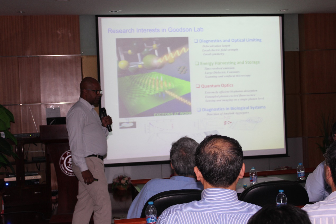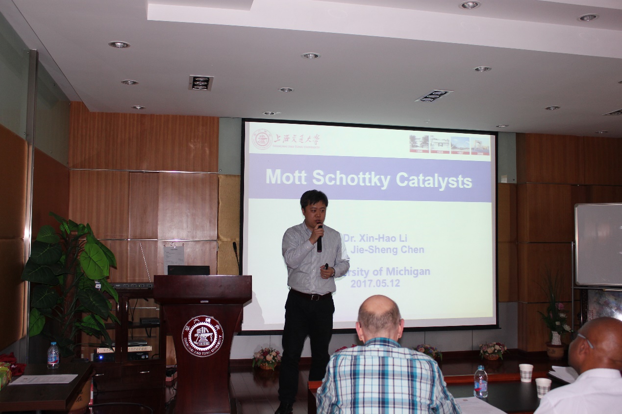 。两年前达成的双方合作意向得到了很好的实施,收到良好效果。希望在此基础上,通过双边交流的机制,深入商讨双边学生联合培养上的可行性方案以及学术研讨。进一步推进双方在教学科研领域的深入合作。 在合作项目讨论环节,朱新远教授,郑思珣教授、孙淮教授与Brian Coppola就双方在教学科研领域的深入合作的相关事宜交换了意见,并达成密切合作意向。 下午1点30分。在学院的演讲厅举行了题为“Frontiers in Chemistry, Biology and Materials ”的双边学术交流研讨会。学院的研究生60余人参加了研讨会。研讨会由孙淮教授主持。