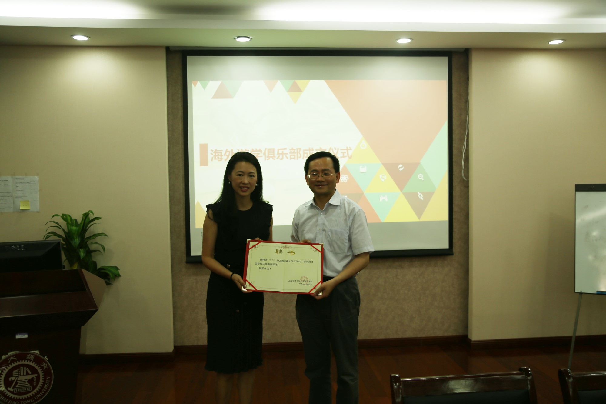 陈颖为海外游学俱乐部第一届主席李上达颁授聘书