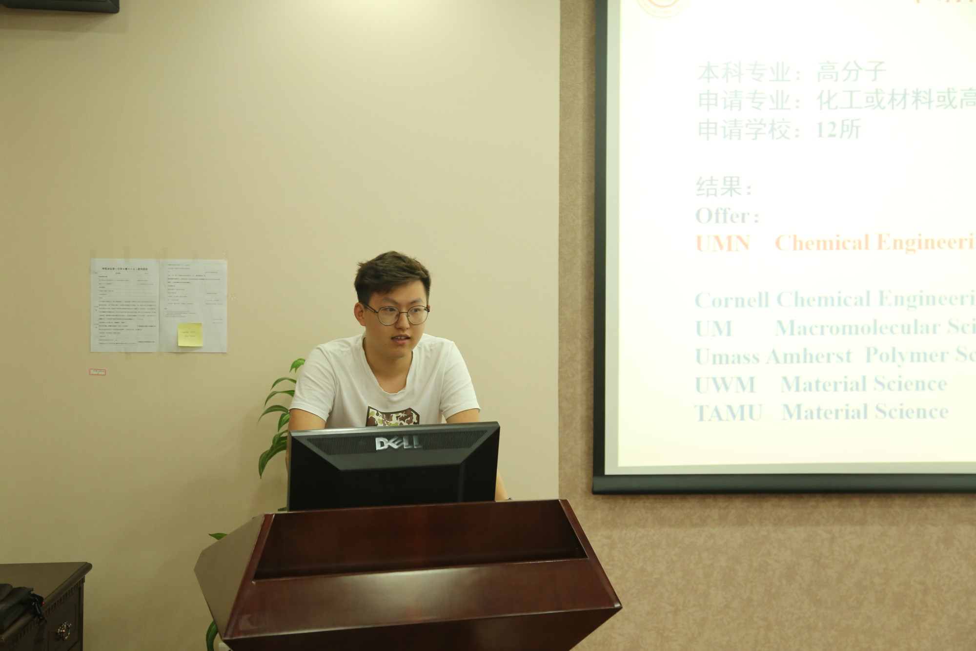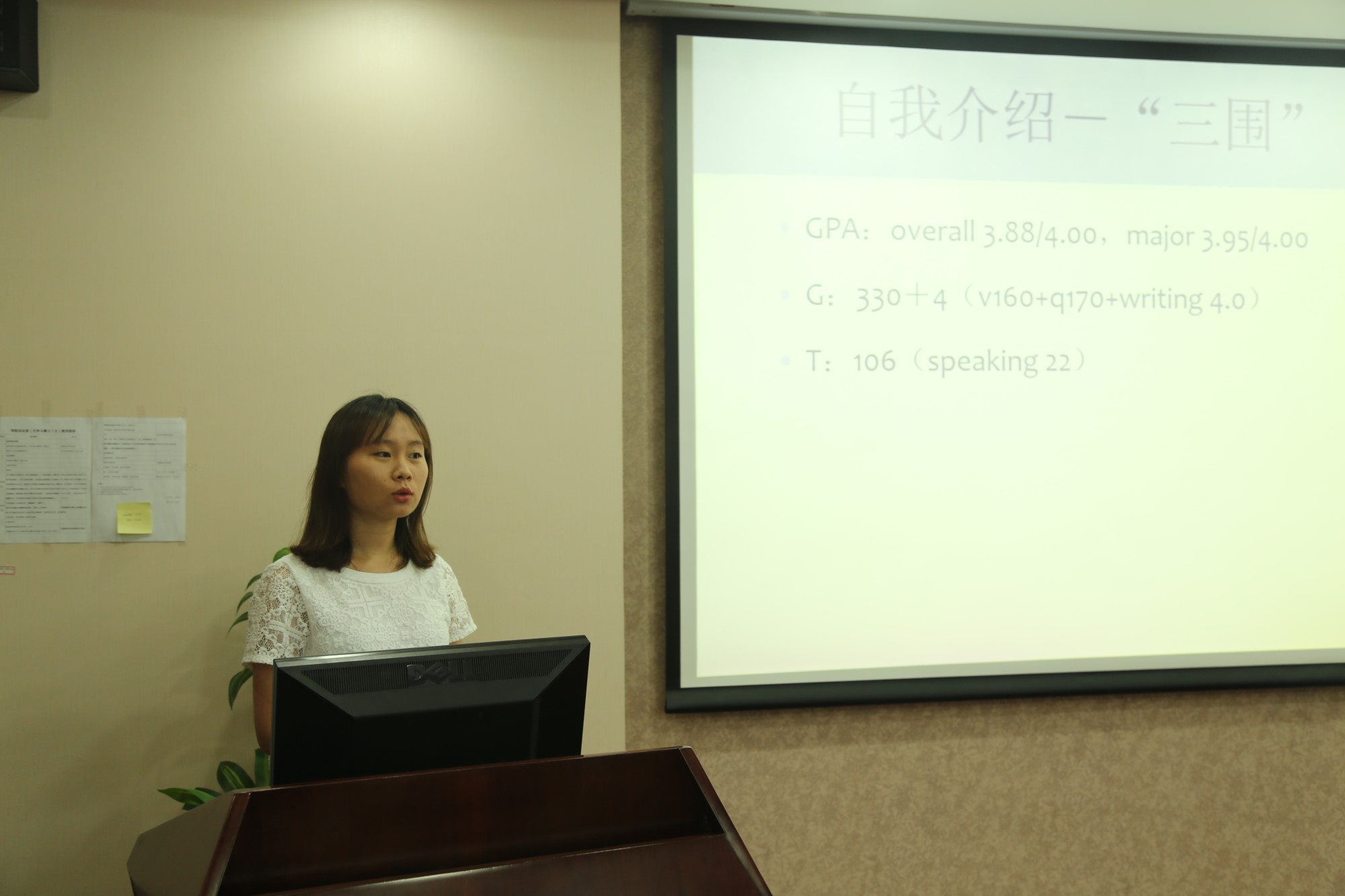 王琪同学主要从理工科转商科的角度出发,向大家分享了自己申请的过程中遇到的问题和解决方案。她希望学弟学妹们能够打好基础,多关注,早准备,找到适合自己的方向。