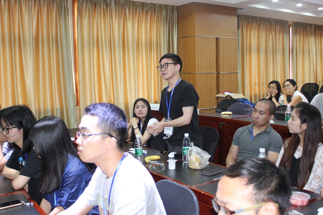 接着,研发中心的陈可冉,胡怡晨,鲍培特等三位领队根据各自的分工,向同学们传授“实验室个人安全与防护”,“化学品存储与废液管理”,“设备装置与风险评估”,“实验室操作与应急处理”等安全知识。每位领队授课结束之后,每组同学选出一个代表,上台讲解上午在走访实验室时发现的安全隐患,以及团队成员总结的解决方案。同学们在专题研究会上认真做笔记,拍照,不错过每一个安全问题的细节。