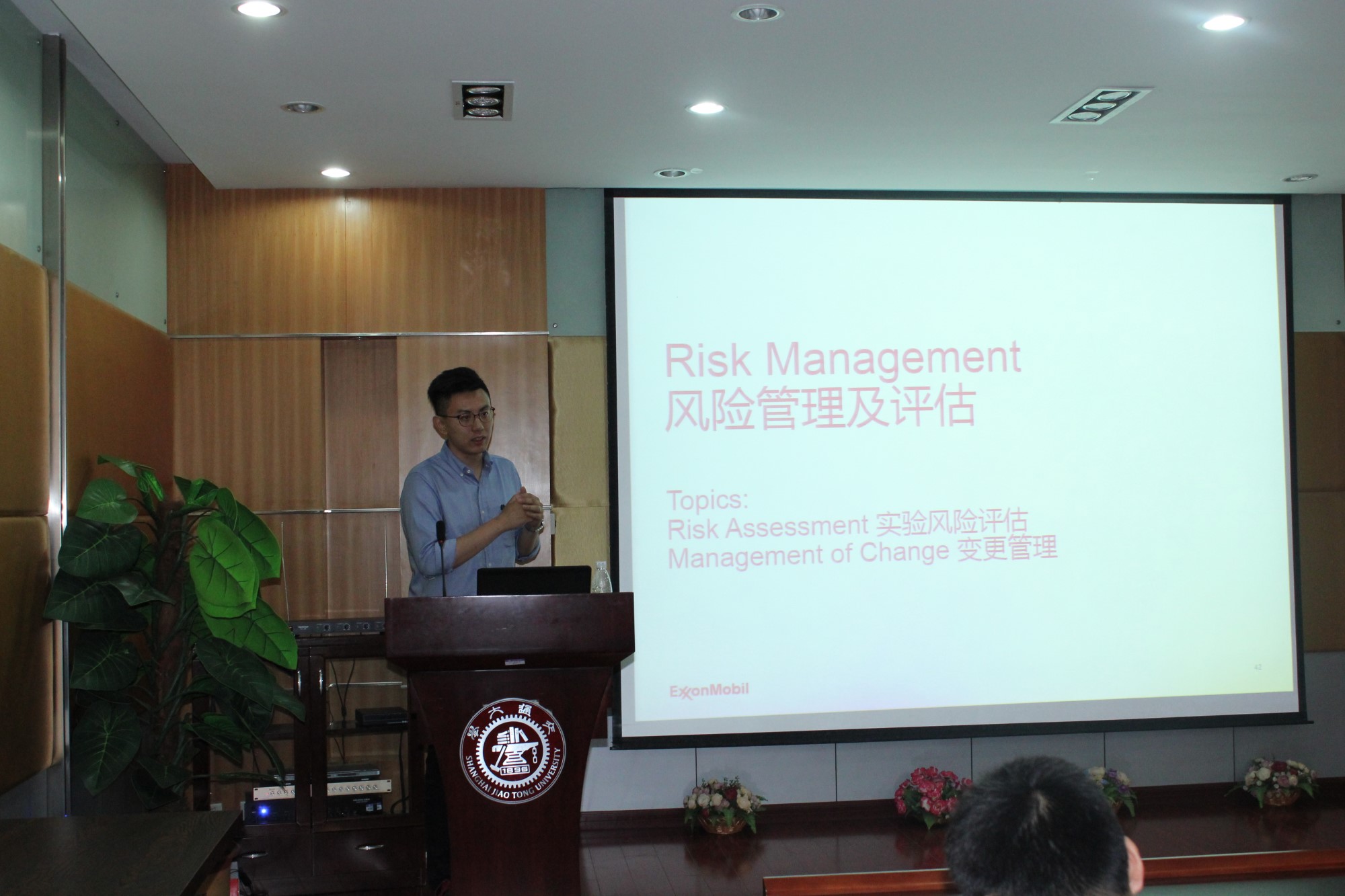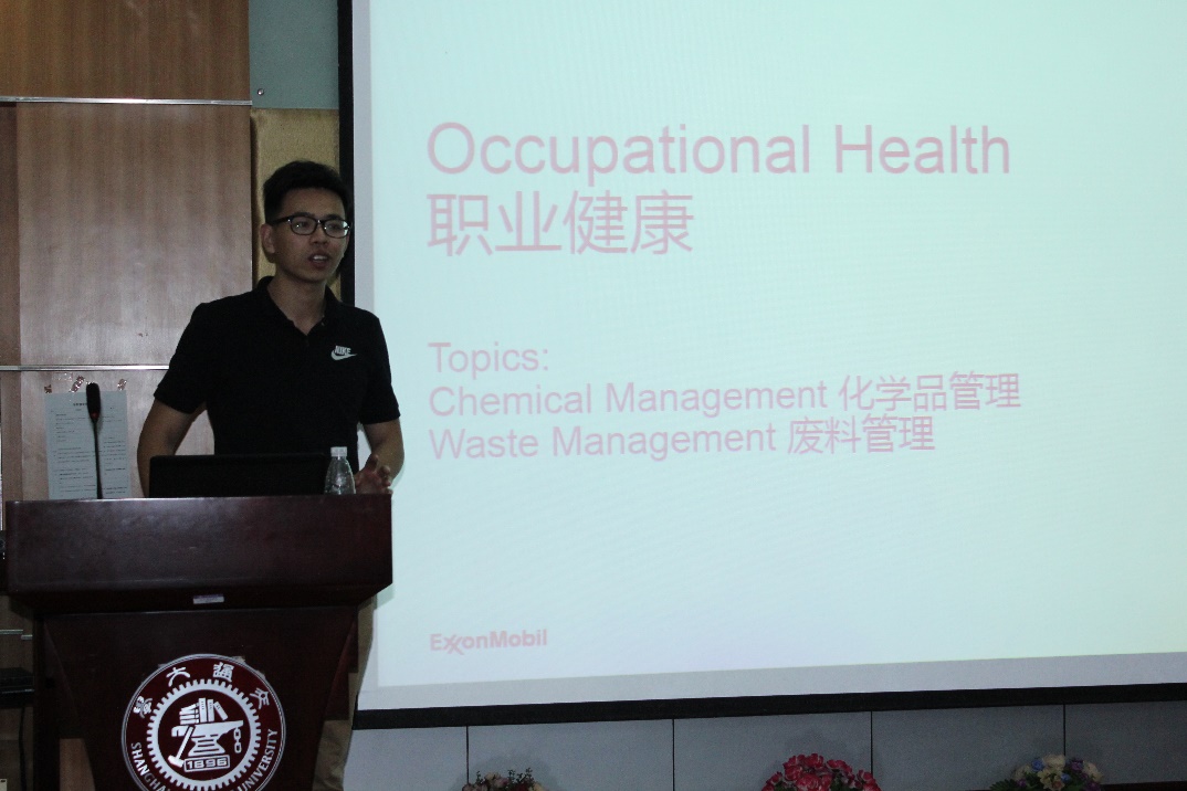 下午1点,研发部主管Robert Wittenbrink先生在五楼演讲厅为学生和学院部分安全员做了 “Safety Management at ExxonMobil” 的专题报告。他的演讲严肃而又风趣,与会同学积极互动,针对日常化学实验遇到的问题,他一一作了解答。