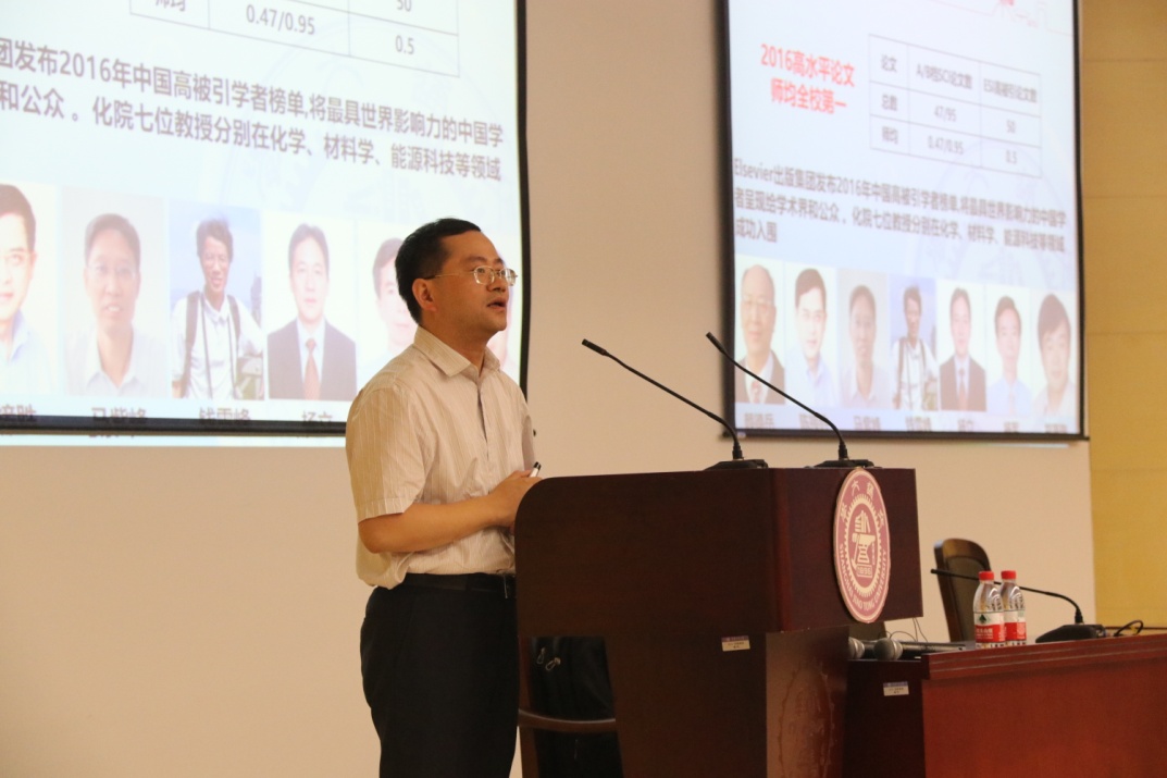 院长朱新远老师讲述了化院的历史变迁并介绍了化院目前的学科排名等内容,以让新生同学们可以更多的、更深入的了解社团学姐漫画