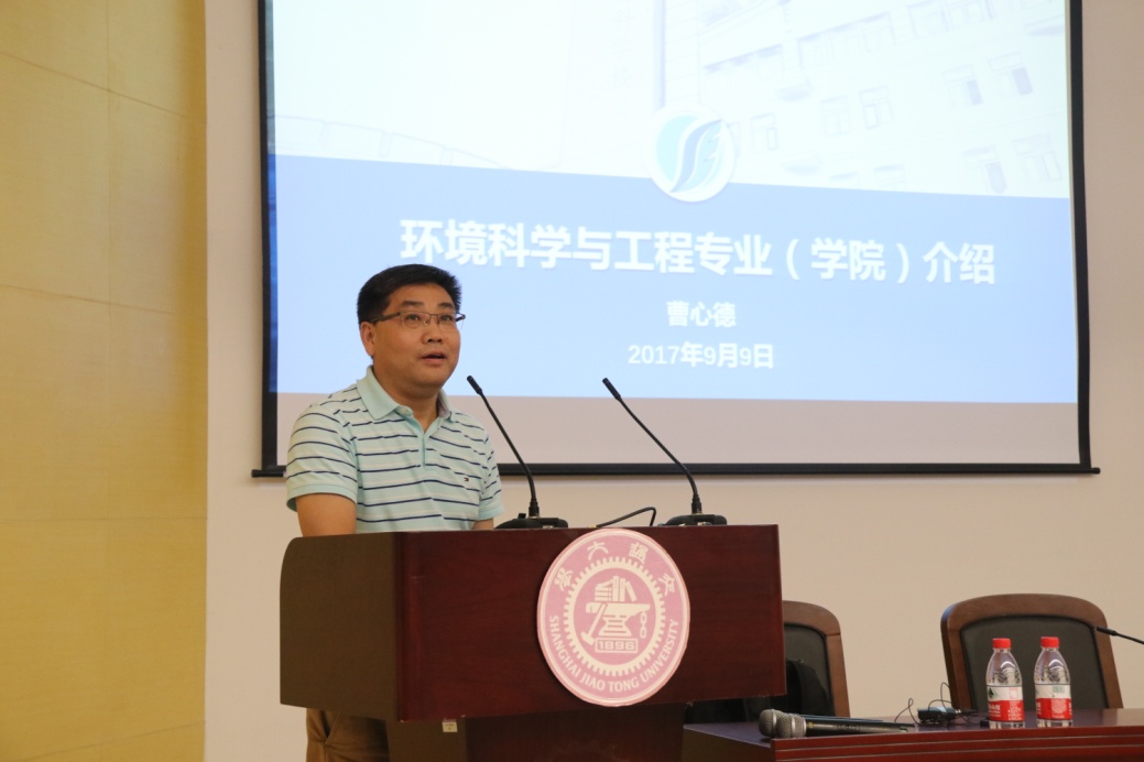 环境与科学学院院长曹心德老师做院系介绍。曹老师以交大在云南的洱海项目为例,让同学们和家长们从实践和身边事中,更深入地了解了环境学院的学科研究方向。