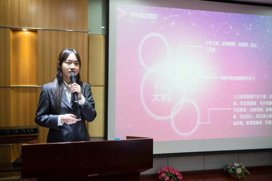 第十八届团委学生会工作报告(草案)》,报告回顾了过去一年半中学生会做的各项工作,同时也对接下来新一届学生会的工作提出了目标、做出了展望。各学生代表听取并审议了此报告,以鼓掌的方式表达了对报告内容的肯定。
