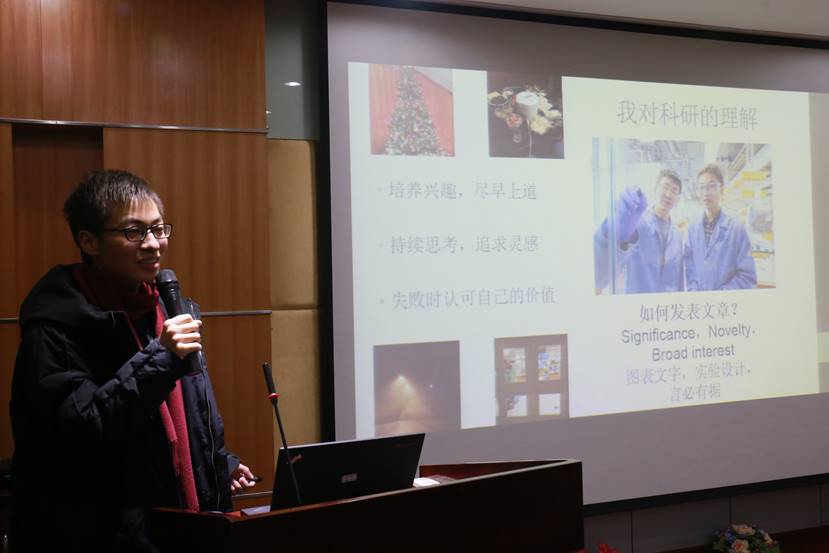 本次年级大会还邀请到石培和林云霄两位优秀的研究生为大家分享科研体会。从如何查阅文献、实验过程的记录、参加课题组组会、出国交流学习到科研思路,他们为同学们做了详细实用的介绍和分享,给已经进入课题组和还未接触科研的同学提供了很大的帮助。