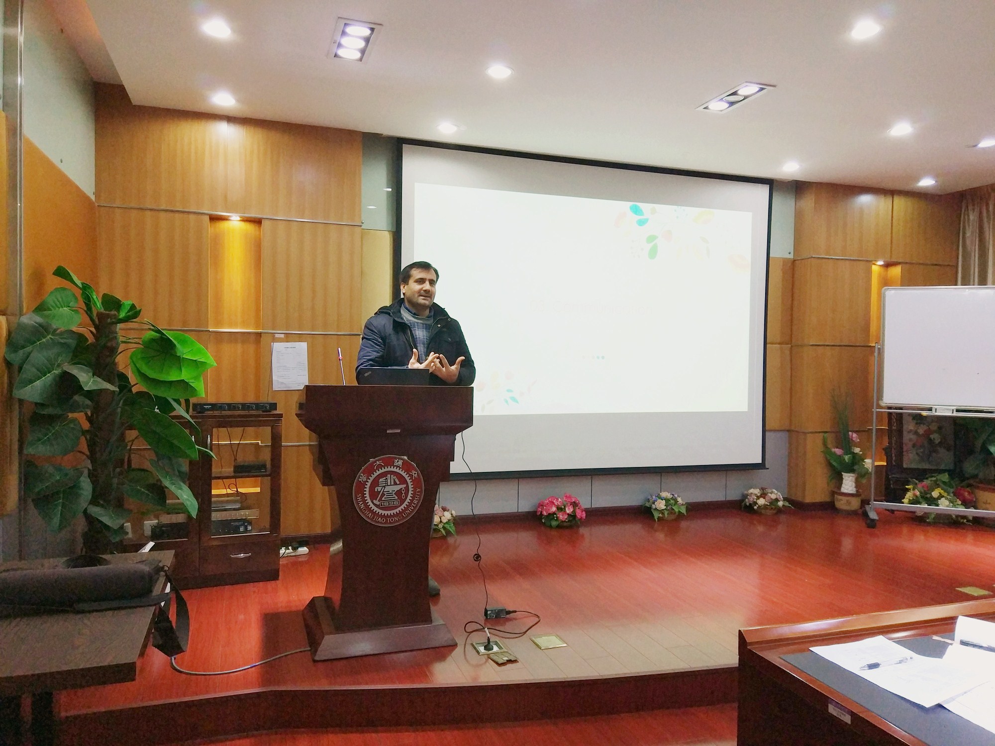 在沟通交流环节,同学们积极发言,提出建议,如询问学校和学院是否有运动相关的活动或社团、能否提供英文版表格资料等。将于今年毕业的两名博士生Iftikhar和Abaid向同学们介绍了自己四年学习的经验。Iftikhar希望学弟学妹们能为自己设立每年的目标,与导师及课题组成员保持良好的关系,并以亲身求职经历告诉大家学好中文的必要性;Abaid表示在交大的四年是他人生中最美好的记忆之一,非常感谢化院和交大给他学习深造的机会,会带着所学所获回到巴基斯坦,建设自己的祖国。