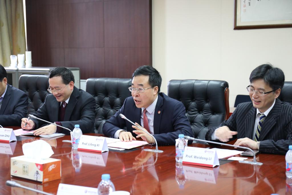 奚立峰代表学校向顾启达一行的到来表示欢迎。他回顾了交大与赢创在过去六年间的两轮合作,对赢创长期以来的支持表示感谢,也对双方第三轮的合作充满信心,希望交大与赢创的友谊与合作不断深入,不断发展。他还表示,赢创的名称即寓意着“创新才能赢”的理念,目前上海市政府与上海交大校领导都非常重视创新,正努力营造适宜创新的环境。