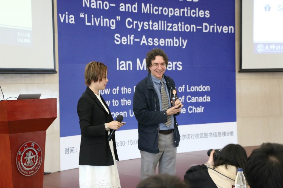 4月8日,英国皇家学会院士、加拿大皇家学会院士、欧盟玛丽居里讲席教授、英国布里斯托大学Ian Manners教授在图书信息楼八楼报告厅做客第98期大师讲坛,为交大师生带来题为“Functional 1D and 2D Nano- and Microparticles via ‘Living’ Crystallization-Driven Self-Assembly”的精彩报告。