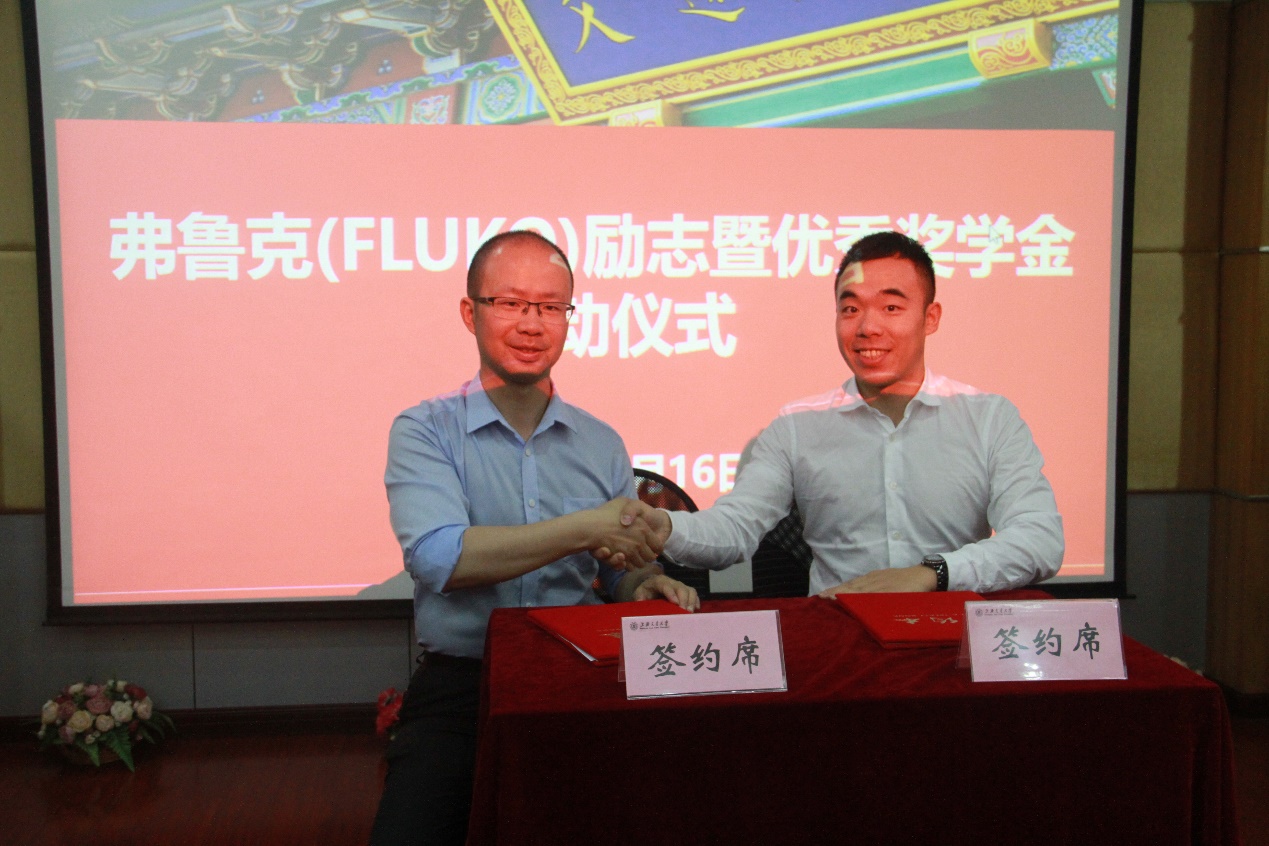 党委副书记郑浩、上海弗鲁克科技发展有限公司副总经理周鸣亮代表双方单位签署了《弗鲁克(FLUKO)奖学金项目捐赠协议书》。社团学姐漫画