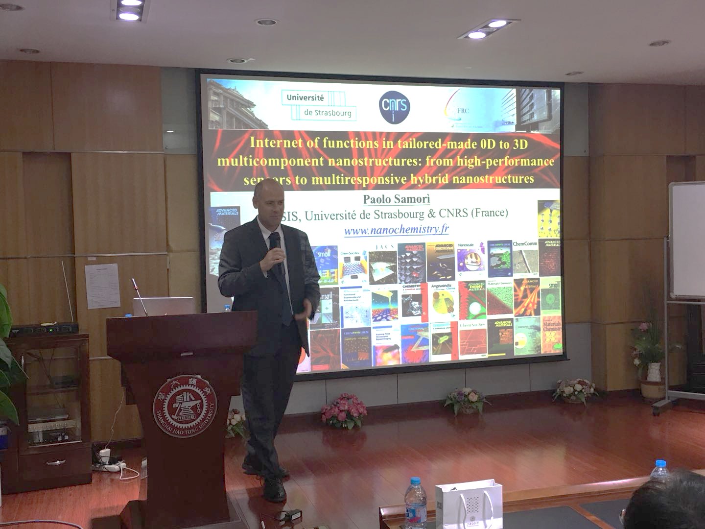 在报告上,Samorì教授首先介绍了法国斯特拉斯堡大学超分子科学与工程研究所的教育概况、科研领域以及国际地位。接下来就研究内容进行了详细说明。在纳米尺度下,发展具有相互联系功能的人工复杂化学系统是化学中最大的挑战之一。本报告介绍了对超分子化学方法的使用,以开发低维纳米结构,如0D(纳米颗粒)、1D(纤维)和2D(石墨烯和其他层状材料)的多组分组装体。这样的组装体表现出可编程互连功能,特别适用于光电、能量和传感中的响应组件。