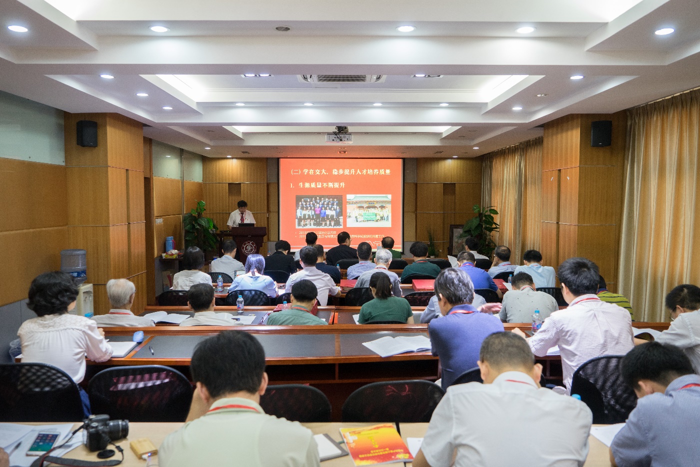 》的党委工作报告。他从党的建设、人才培养、师资队伍建设、科学研究、国际教育与合作、文化建设等方面回顾总结了学院党委近年取得的各项成绩,同时也提出工作中存在的不足与问题。在对学院改革发展面临的新形势进行深入分析的基础上,从国家发展、时代需求、学校争创一流的大背景、大格局中科学谋划学院发展,明确了要推进提升学生培养质量、学科内涵发展、人才强院和国际化合作的四大战略。