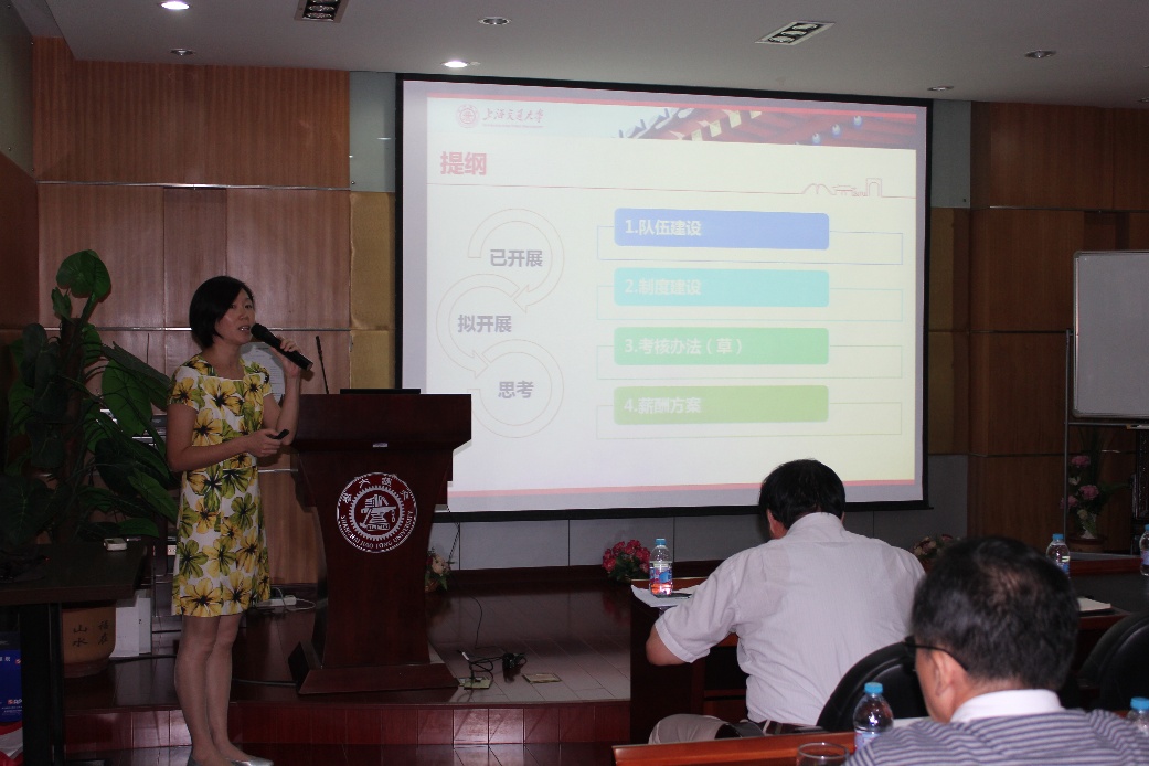 9月7日上午10时,学院发展研讨会在演讲厅召开。学院党政领导班子全体成员,正高教授研究员,青年千人,优青以及行政管理人员等80余人参加会议。本次会议由学院党委书记贾金平教授主持。 首先,贾金平向与会代表通报了上学期校党委巡察组在学院巡察工作的反馈结果。巡察组约谈了学院教师超过100人次,反馈意见中指出学院党委统筹引领作用有待加强;基层党建不严不实的问题存在;学院实验室安全存在重大隐患;师资,学科统筹协调还需要加强等四方面问题。按照巡察组提出的问题,他进一步指出学院应该按照巡察组的要求尽快行动起来,各个部门要根据相关意见提出相应的整改意见并认真落实。 阎文璠副书记向大会作了学院全面发展的专题报告。报告从队伍建设,制度建设,考核办法,薪酬方案等几个方面展开。详细介绍了学院在今年上半年各方面工作的最新进展。报告中也提出了学院发展的瓶颈问题,指出全体教师应该“居安思危”,正视存在的不足,积极寻求题解,为学院未来的长足发展做出新贡献。 郑浩副书记向大会作了“构建以就业为牵引的全员育人体系”的专题报告。报告中回顾了学院人才培养的光辉历史,近年来学院毕业的学术人才。着重指出化学和化工两个学科近年来在QS排名取得的长足进步,以及在今年学科评估中两个学科取得的成绩。针对学院研究生的就业方向进行了详细分析并提出相应对策。同时还向大家简单汇报了社团学姐漫画