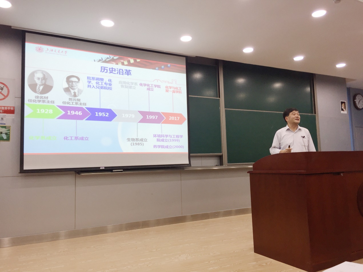 分管学生工作的郑浩副书记向各位同学介绍了学院的学生工作。他强调新生要树立正确的成才观,更是通过鲜活例子告诫同学们要坚守学术底限,不能违反学术道德。同时他还对近期的研究生事务进行了梳理,帮助同学尽快适应在化院的科研与生活。