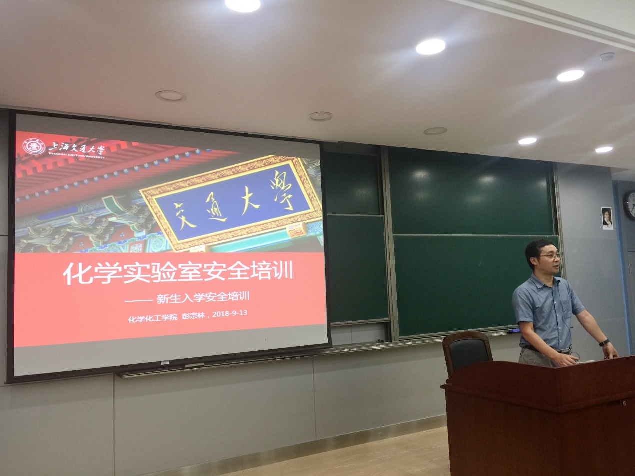 分管实验室安全工作的彭宗林副院长介绍了学校、学院的实验室安全管理体系以及防毒防火防爆防电防水等各种安全注意事项,语言生动活泼,同学们将实验室安全法则牢记心中。