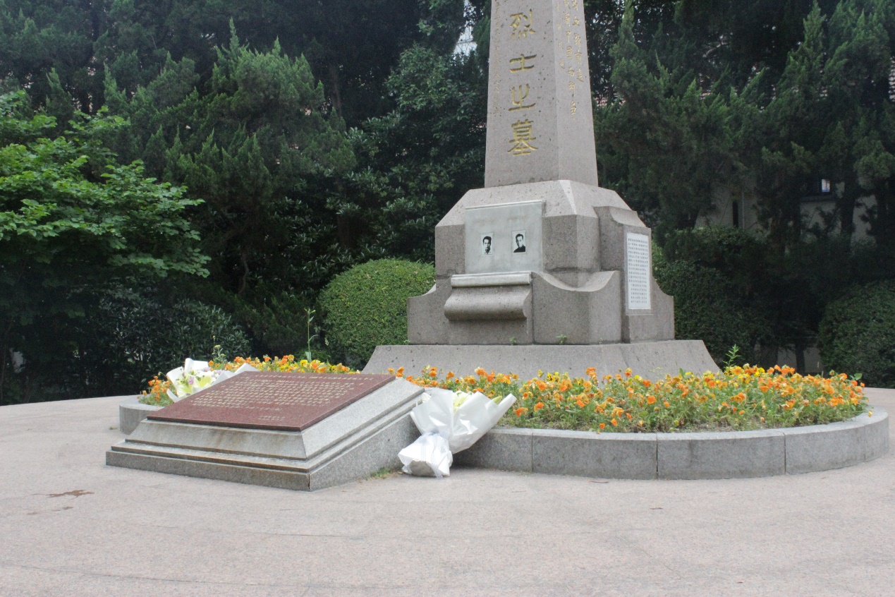 接着,同学们为两位烈士献上鲜花,并全体肃立默哀一分钟,表达同学们的缅怀之情与敬佩之意。化院的研究生代表张甜同学发言说,伟大的革命先烈们,就在与我们一般大的年纪,为国家英勇的献出生命,表现了坚定的共产主义理想和信念,这正是我们今天要弘扬的核心价值观的体现。70年过去了,光辉的思想是不朽的,我们更应该居安思危,铭记历史,用自己的青春和热血为共产主义事业奋斗终生。本科生艾力飞热同学说作为一名学生党员,一方面我们要继承革命先烈的奉献精神,努力做到全心全意为人民服务;另一方面,少年强则中国强,我们要努力学习文化知识,充分发挥自己的智慧,科技兴国。