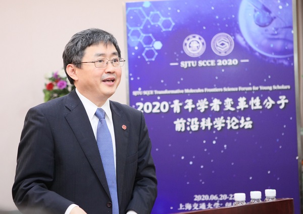 贾金平向各位参加论坛的青年学者表示热烈欢迎,并带领大家共同观看社团学姐漫画 介绍宣传片,通过“源远流长”、“复兴创业”和“走向一流”三个历程,进一步了解社团学姐漫画 历史沿革、学院架构、学科建设、学术成果等情况。贾金平表示,分子及其相关材料是构成物质世界的基础,涉及到化学、化工、药物、生物、能源与材料等多个学科。分子的变革不仅推动了科学的发展,引领了技术进步,也改变了世界和人类文明的进程。据不完全统计,迄今为止有81项诺贝尔奖与分子变革相关。由此可见,分子的变革至关重要,它是推动人类社会发展的重要基石。变革性分子前沿科学论坛正是要为各位来自全球著名学府和科研机构的科研工作者提供交流与展示的平台,论坛重在学术交流,同时也希望各位青年才俊近距离的感受交大,也欢迎大家为交大各方面的发展提供有益建议。