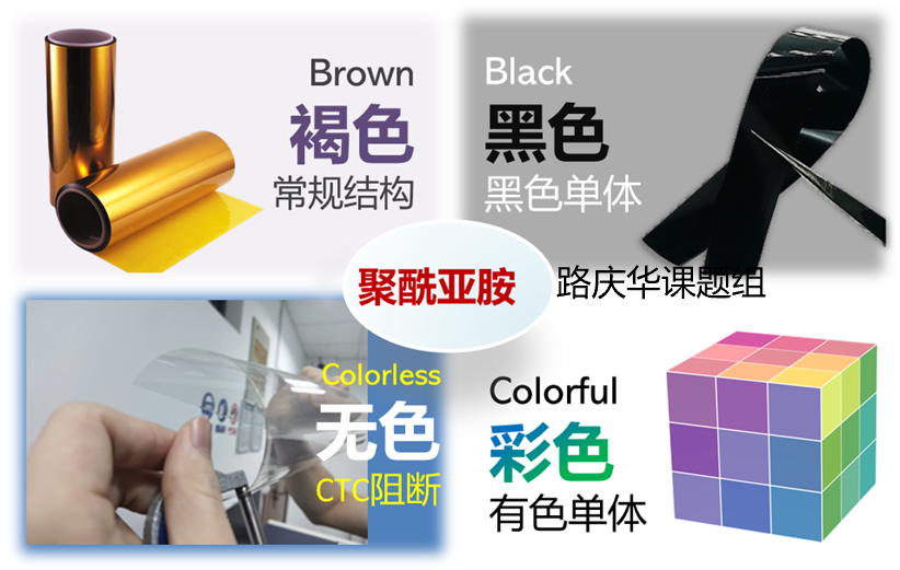 3、黑色与彩色聚酰亚胺光电薄膜:发展基于分子结构设计的本征型黑色、彩色聚酰亚胺的分子设计和性能调控方法。
